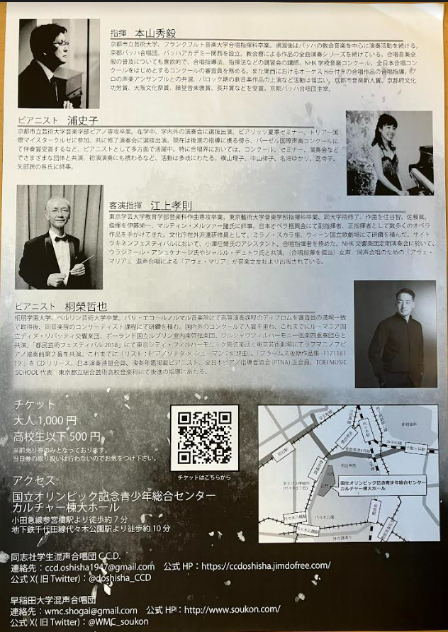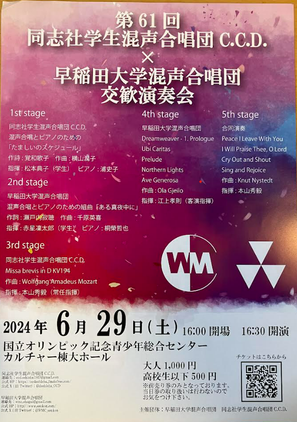 早稲田大学混声合唱団(早混)と同志社学生混声合唱団C.C.Dの第61回交歓演奏会が開催されます。